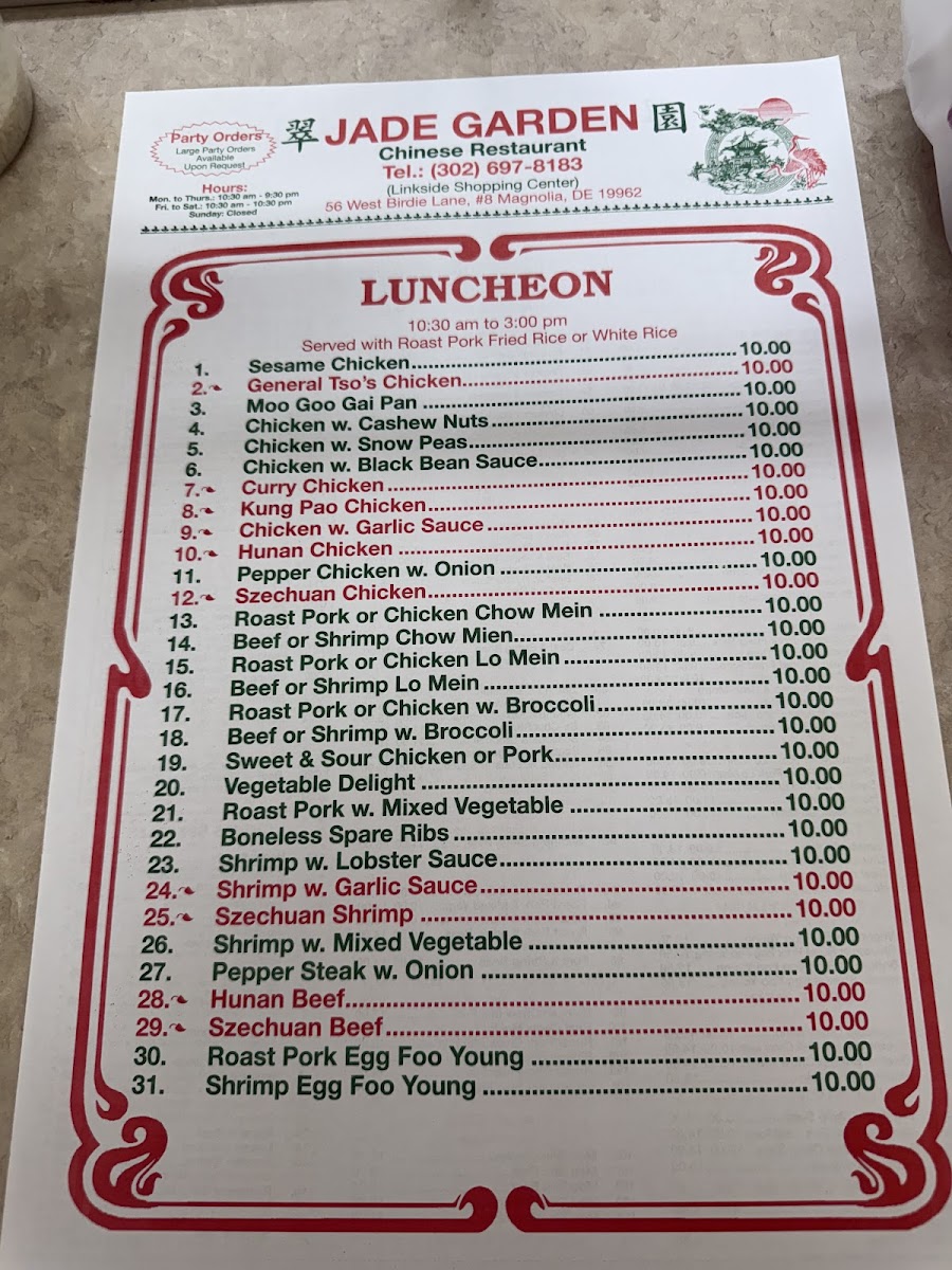 Jade Garden Magnolia Menu